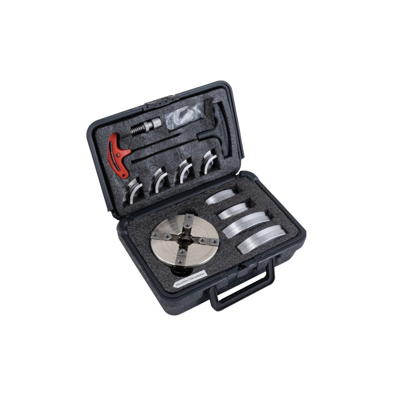 Ce mandrin s'adapte à tous les tours courants dotés d'un filetage M33 x 3,5 et peut - en fonction de la conception de la broche du tour - être fixé à la broche avec une bague de sécurité anti-fuite ASR-Euro (disponible en option) ou à l'aide de la vis sans tête fournie !