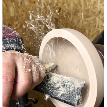 Le racloir s'utilise souvent pour le creusage en bois de bout. Il est conseillé aux tourneurs débutants car sont utilisation est plus simple qu’un anneau de creusage. Un outil bien pratique à avoir dans son atelier.