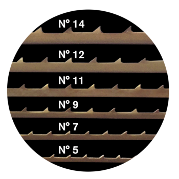 Une lame de scie largeur 13 mm et guides traditionnels.